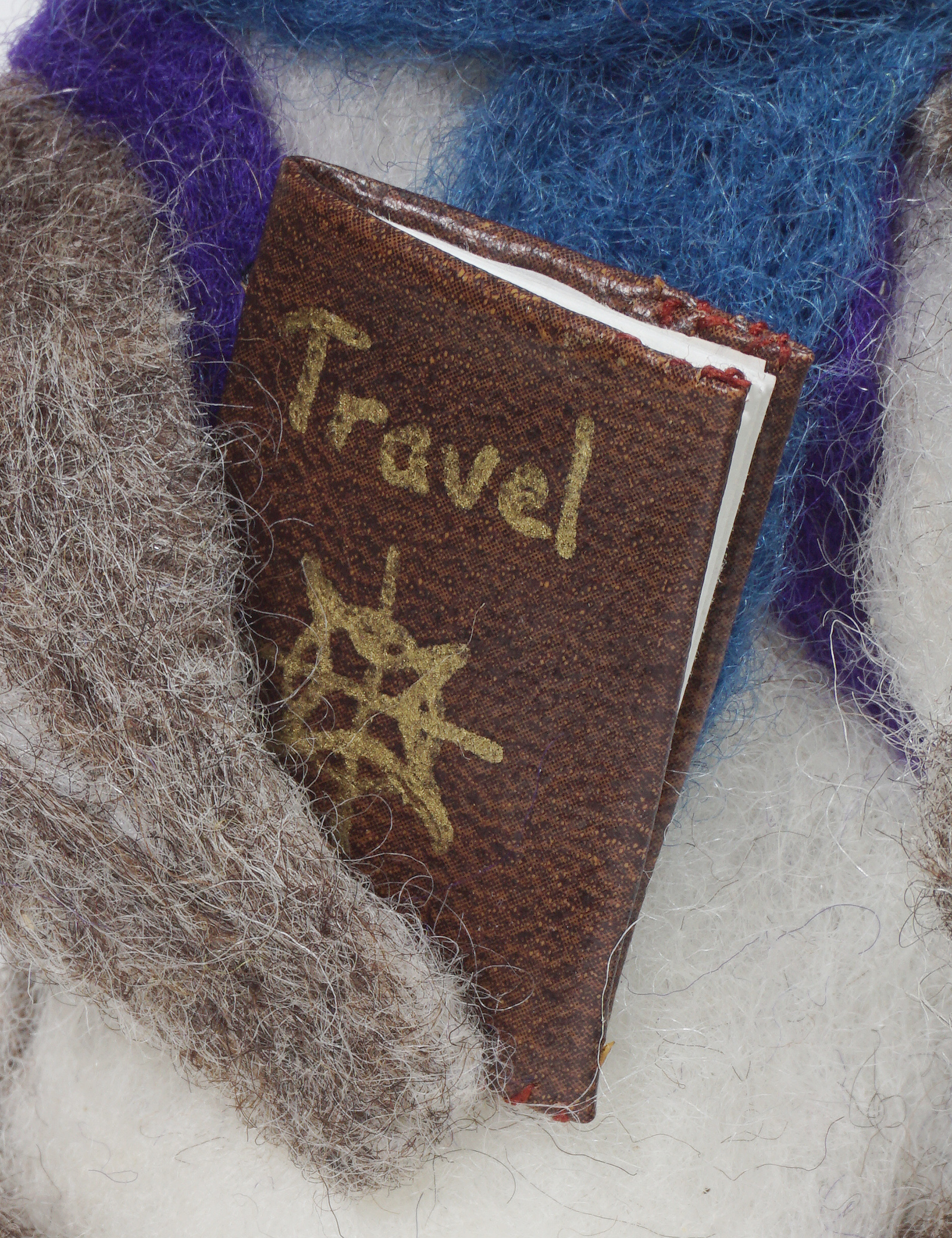 Adventure Beginsbook ← Previous Next → Adventure begins travel journal Adventure Begins anthropomorphic needle felted mouse art doll – closeup of travel journal