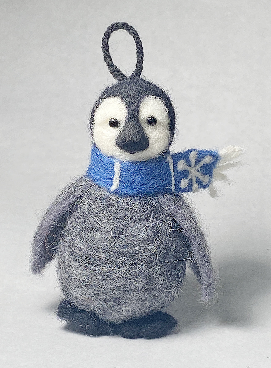 Baby emperor penguin with scarf. needle felted 1-of-a-kind ornament