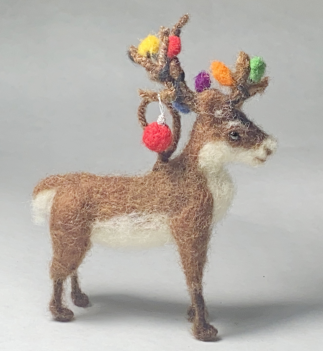 Deco-Deer ← Previous Next → Deco-Deer Reindeer with ornament and lights. needle felted 1-of-a-kind ornament
