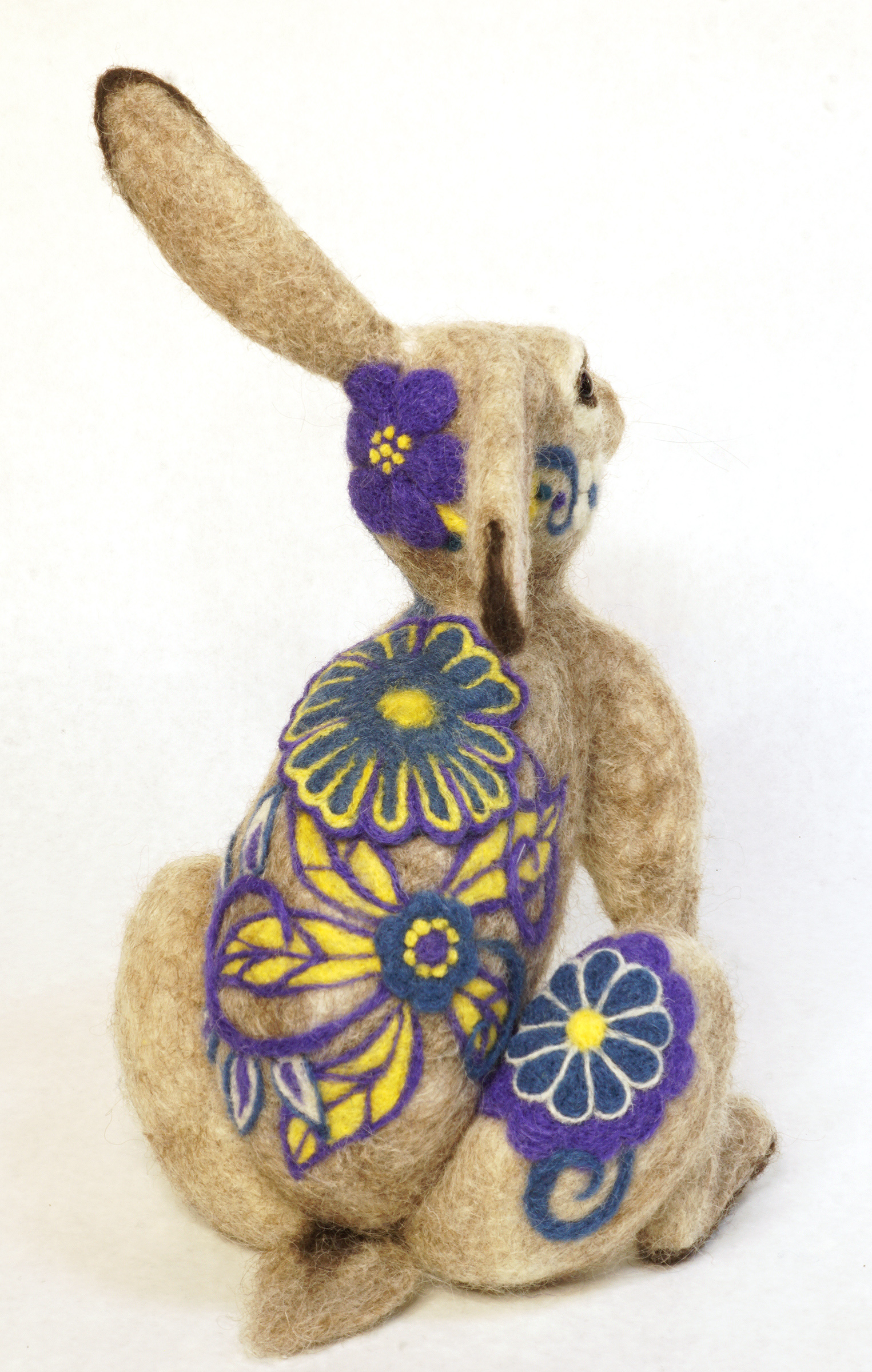 florian back ← Previous Next → Florian back view Hare sculpture with boho floral patterning. Needle felted wool – wire and batting armature – rabbit