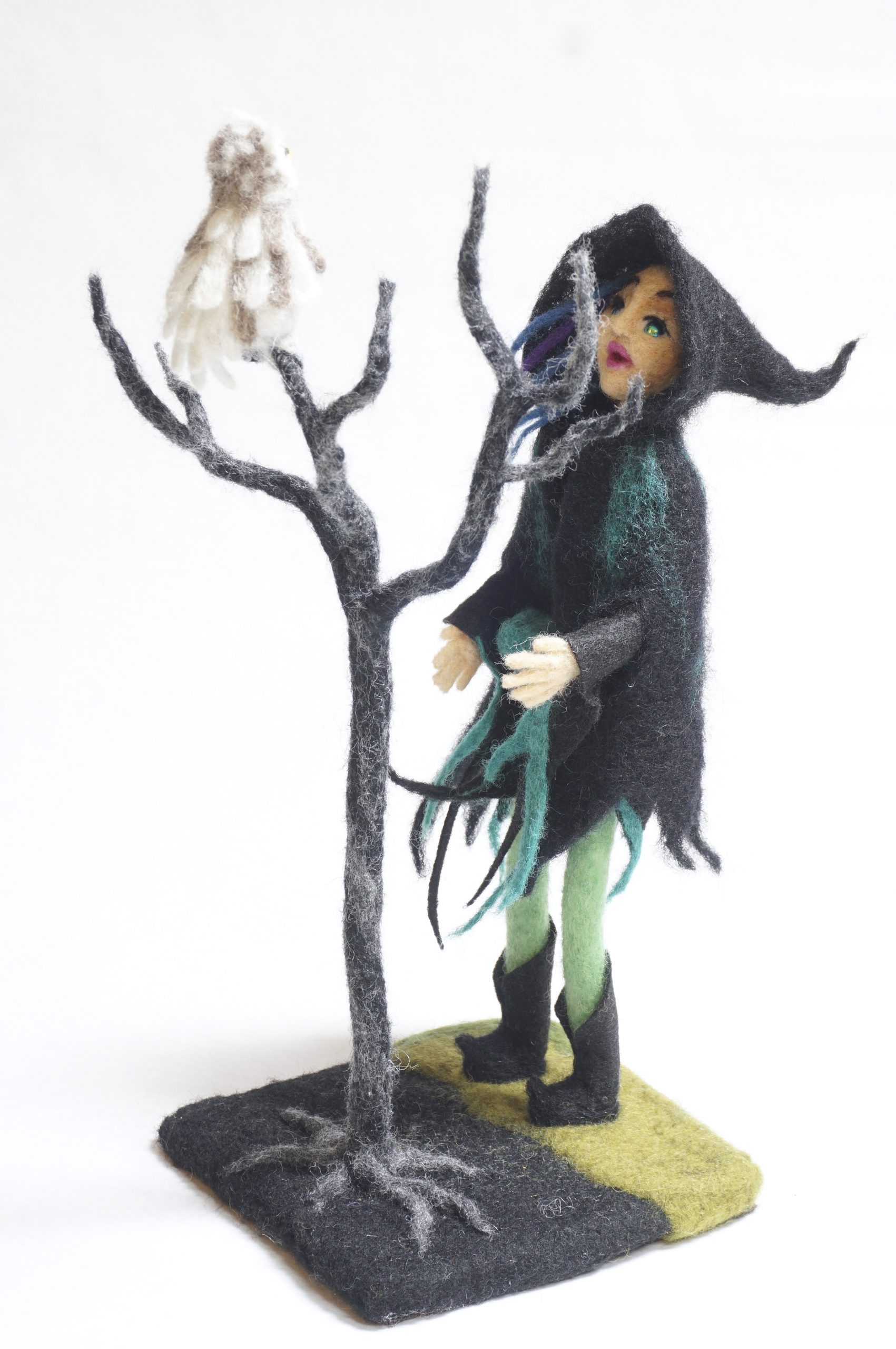 The Consult art doll ← Previous Next → The Consult $365 “wise woman” art doll consulting with an owl. Needle felted wool over wire armature