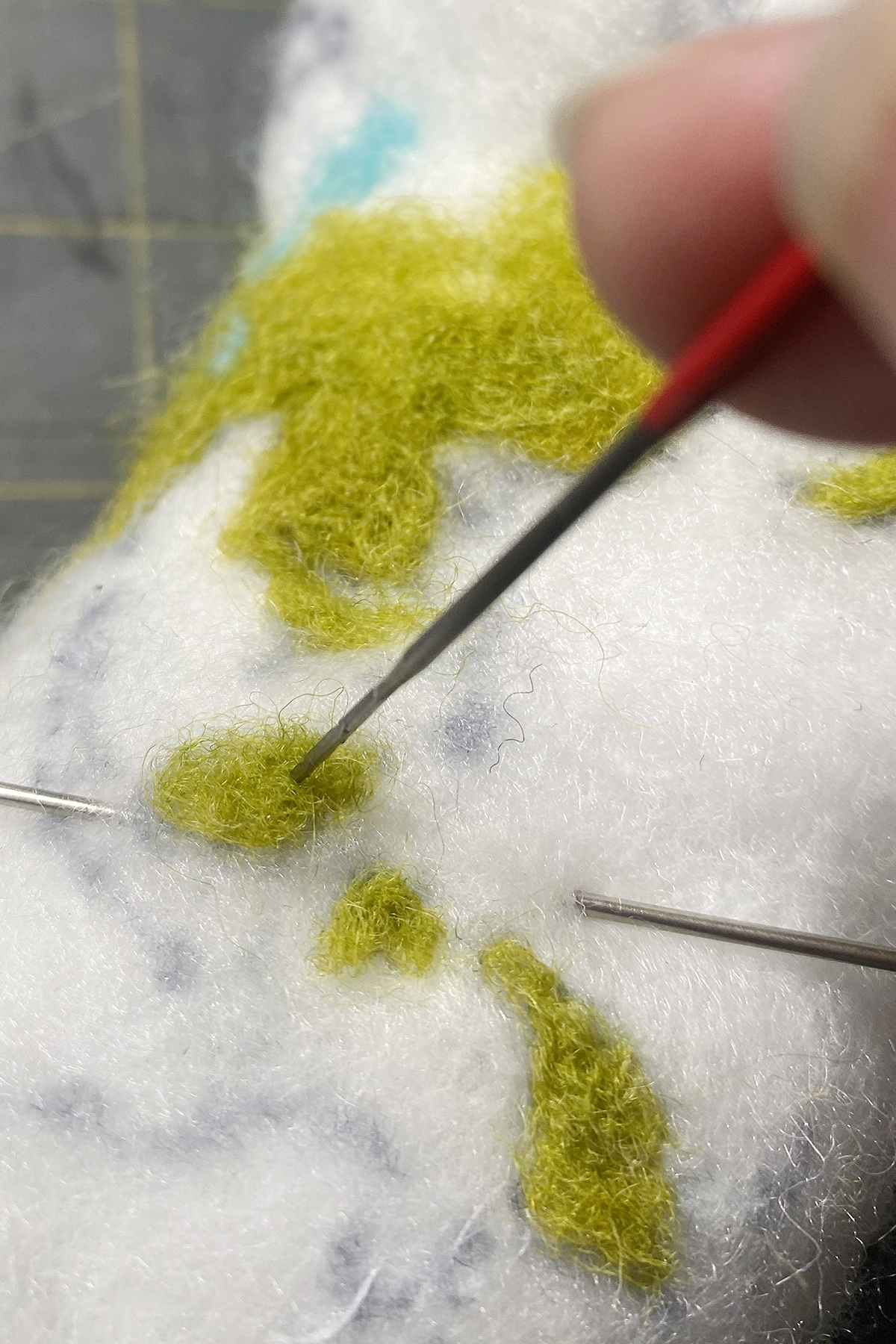 gaia proc2 ← Previous Next → felting map detail Gaia – Sacred Cow sculpture, needle felted wool over wire and batting armature with globe patterning – felting map detail