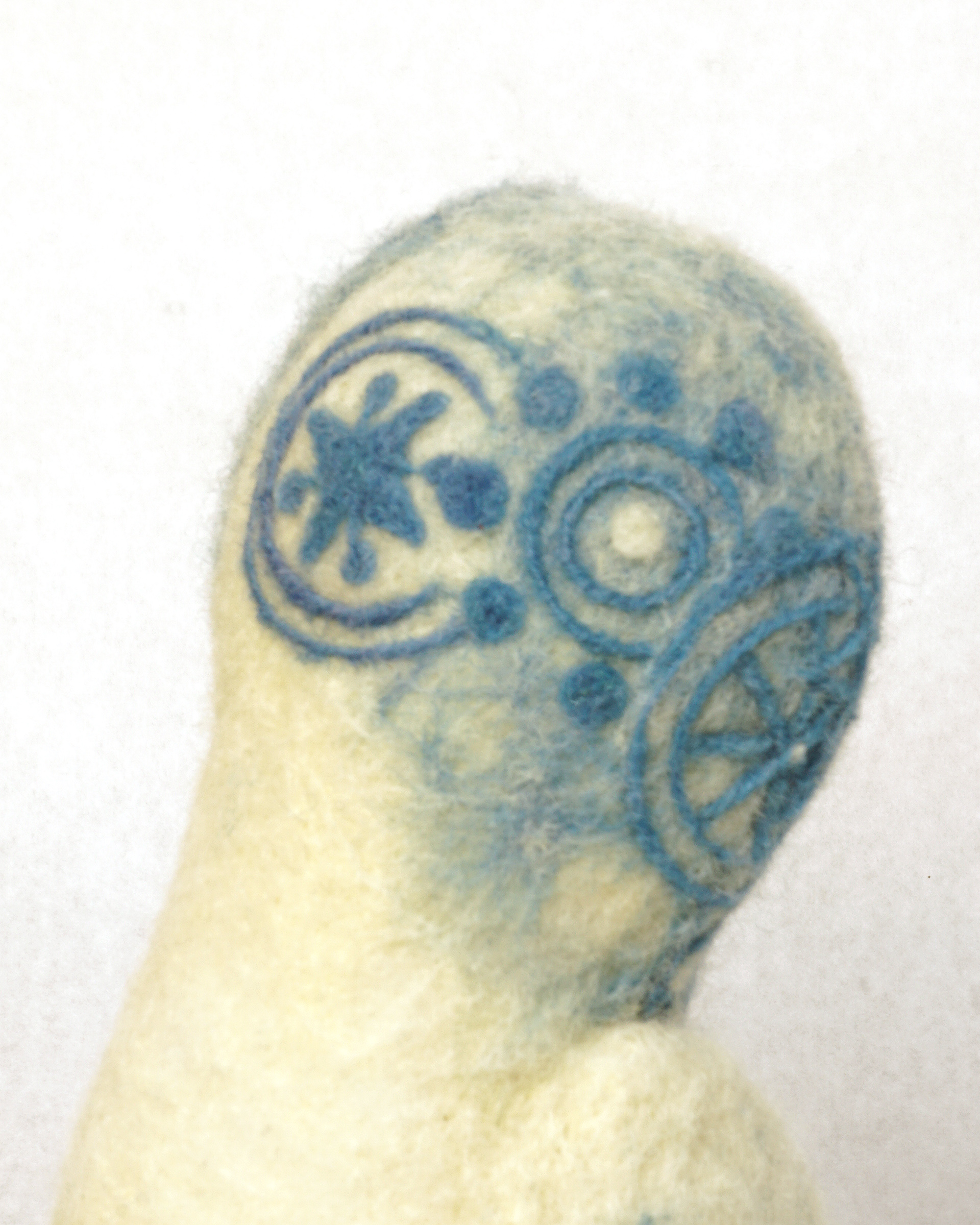Hesperia head ← Previous Next → Hesperia back of head Owl sculpture white with blue patterning. Needle felted wool – wire and batting armature