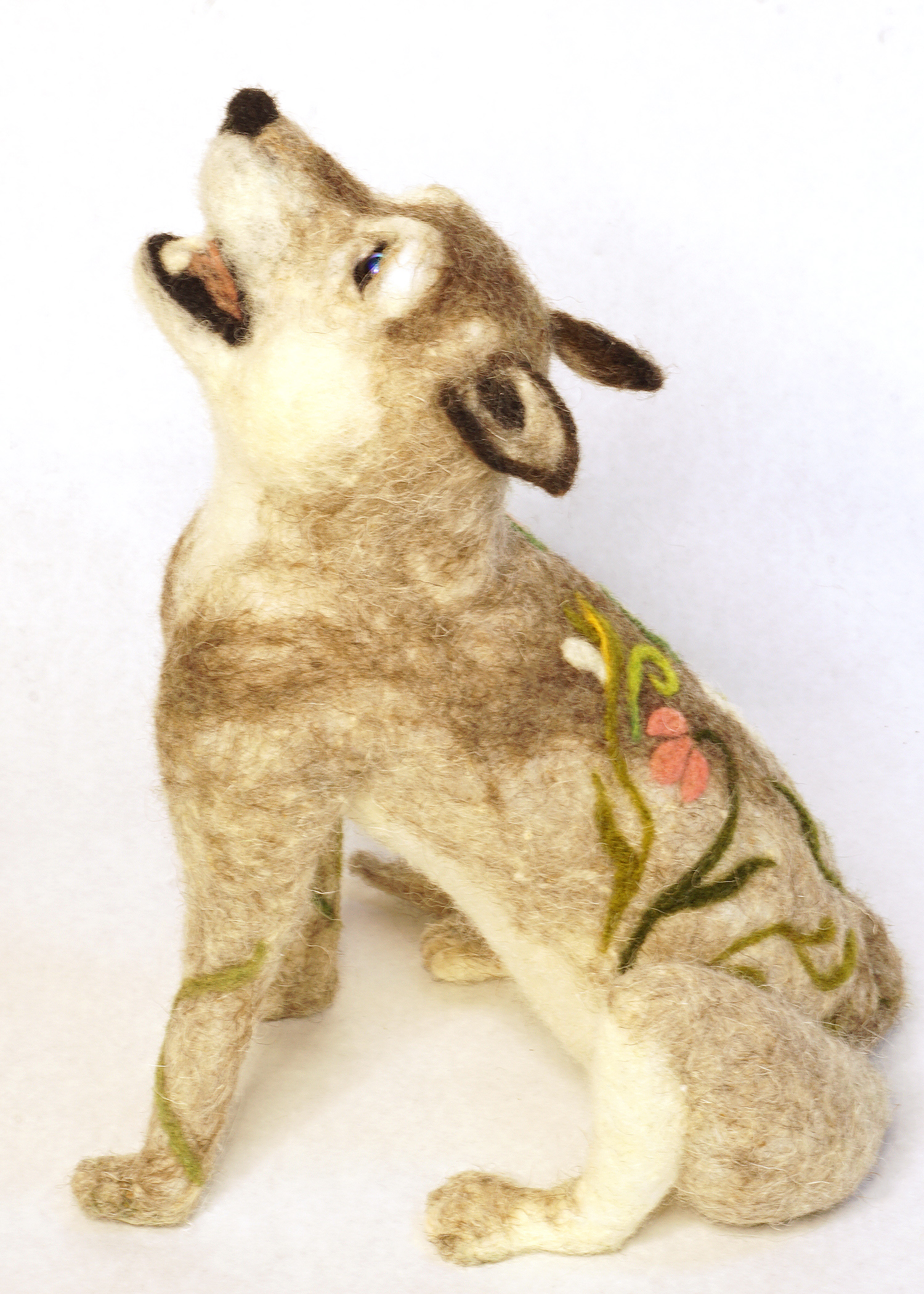 Loup Nouveau 2 ← Previous Next → Loup Nouveau – left facing needle felted howling wolf art doll figure sculpture with art nouveau inspired floral pattern