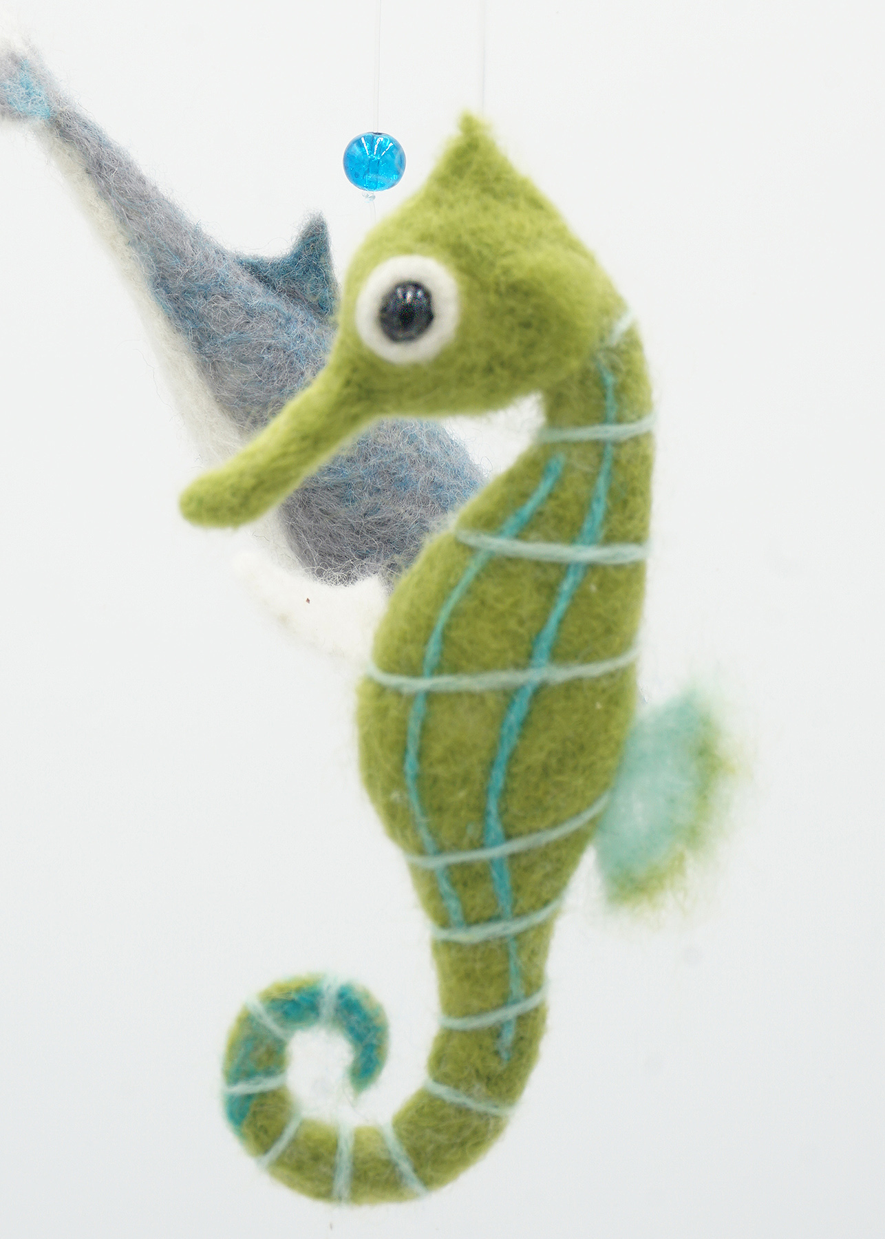 sea mobile 4 ← Previous Next → Sea Horse detail of needle felted sea horse from sea life hanging mobile sculpture