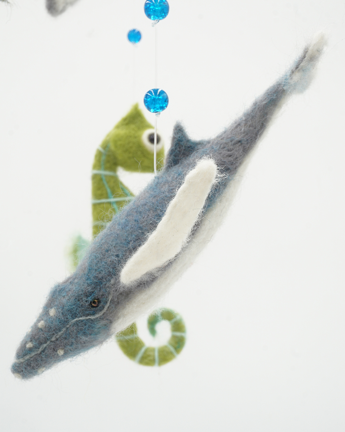 sea mobile 6 ← Previous Next → Humpback Whale detail of needle felted humpback whale from sea life hanging mobile sculpture
