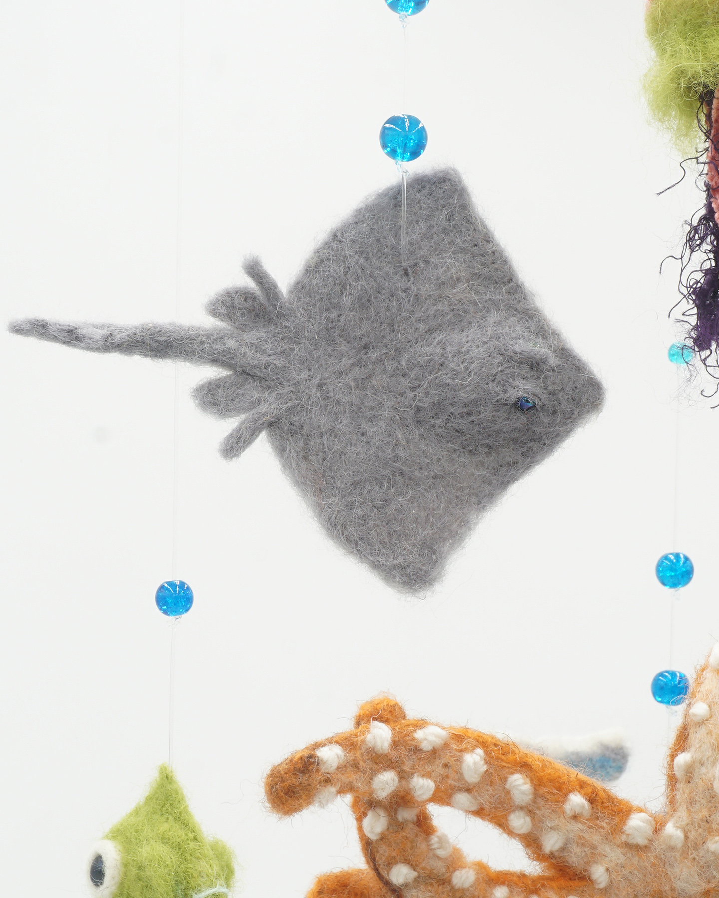 sea mobile 9 ← Previous Next → Ray detail of needle felted ray from sea life hanging mobile sculpture