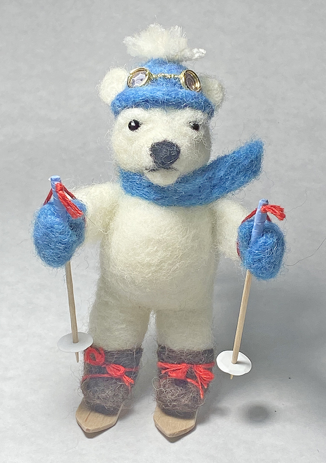 polar bear on skis. needle felted 1-of-a-kind ornament