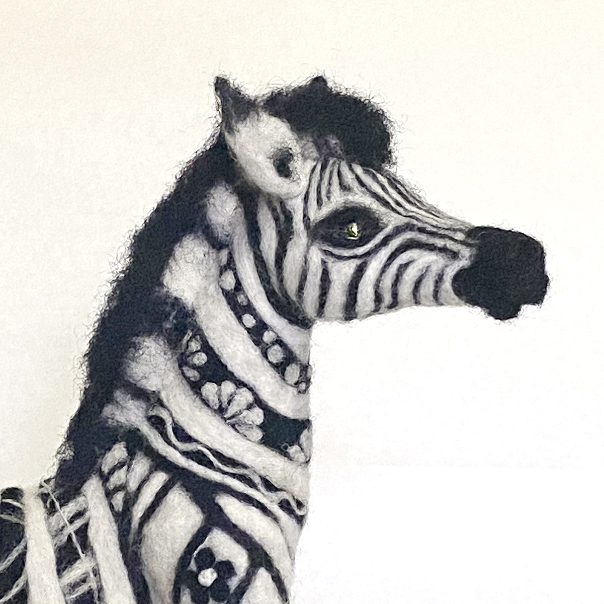Zen-bra portrait ← Previous Next → Zen-bra portrait zentangle zebra “Zen-bra” needle felted sculpture